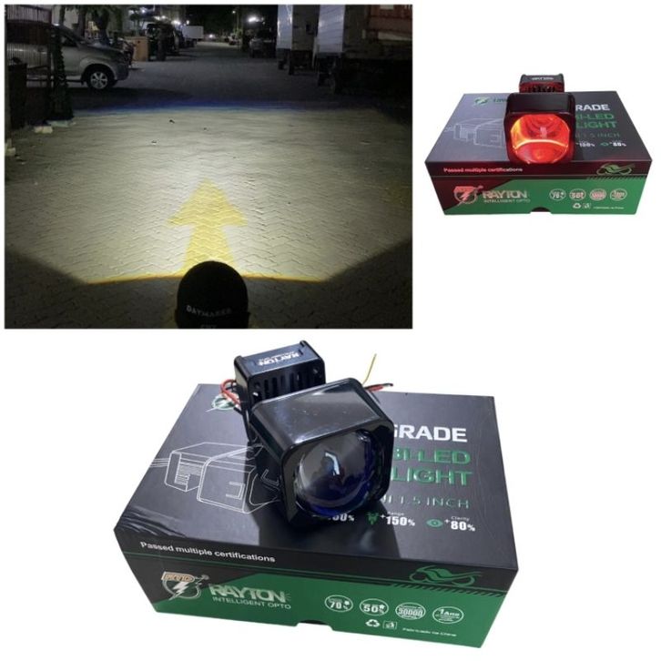 Lampu Depan Biled Matrix RTD Rayton X1 1.5 Inch Blue Lens Devil Led Kipas 50 Watt