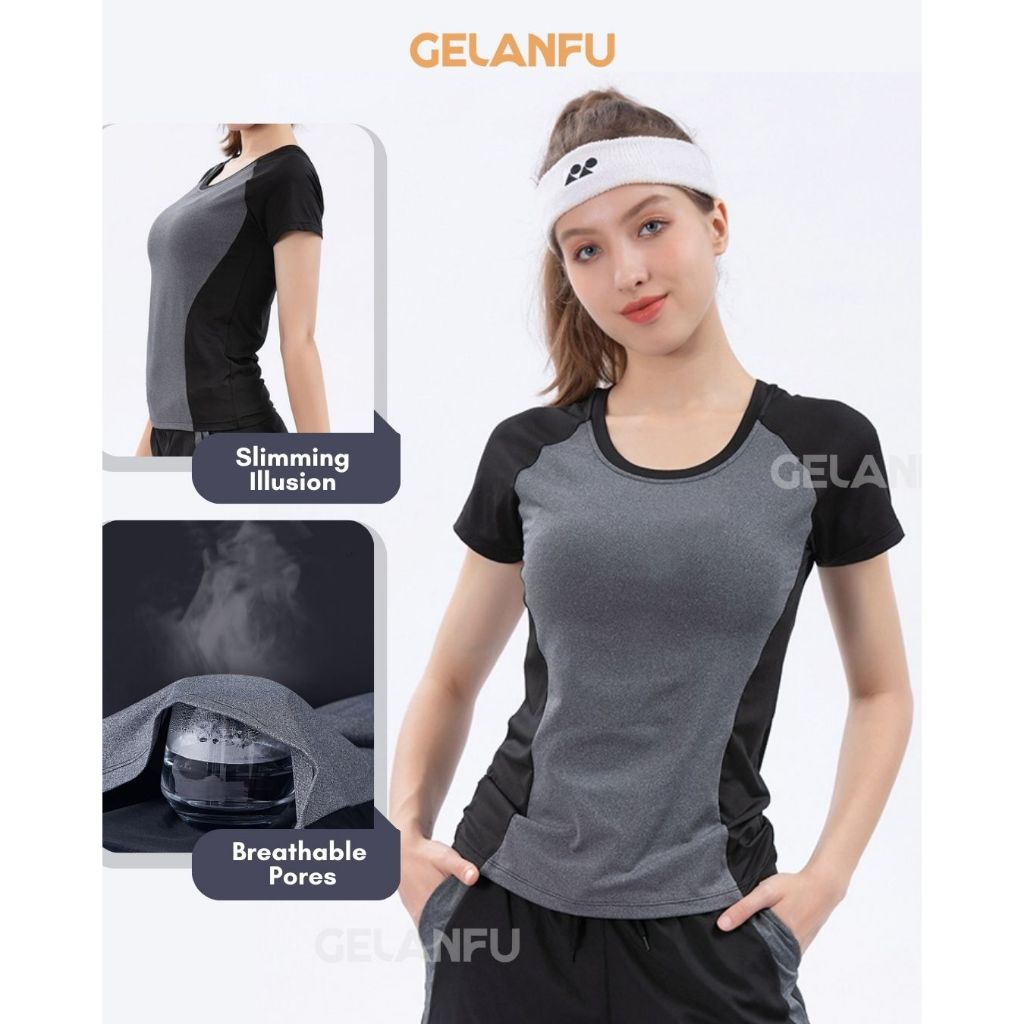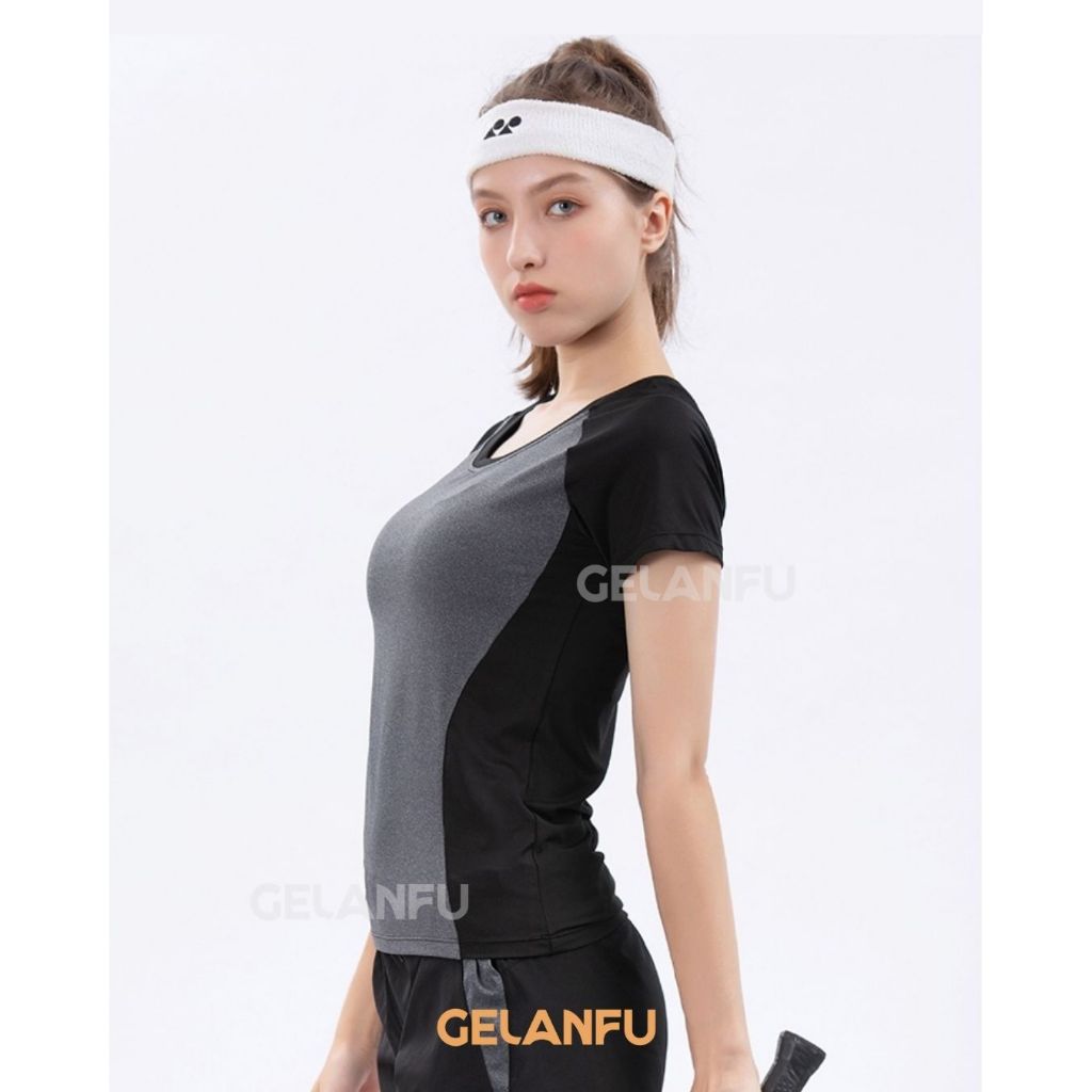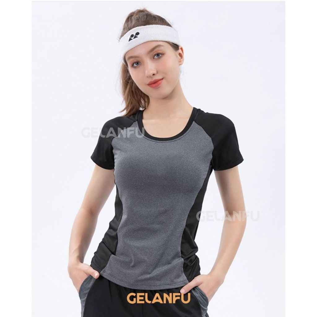 Kaos Baju Olahraga Fitness Basket Badminton Running Sportwear Cewek Wanita Black Yoga Pilates