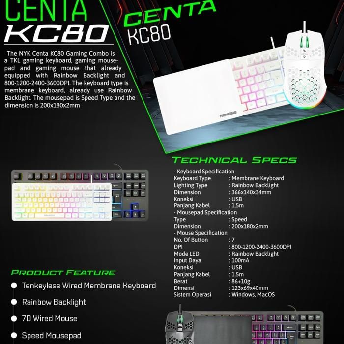 NYK Nemesis Centa KC80 Keyboard Mouse Gaming Combo 3in1 Bundle TKL Set | Garansi Nasional 1 Tahun - Fantech P31