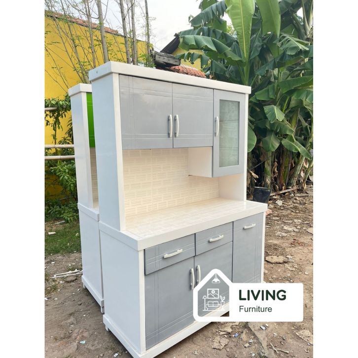 Lemari sayur / rak piring kayu / rak dapur / kitchen cabinet / rak piring minimalis 3 pintu modern