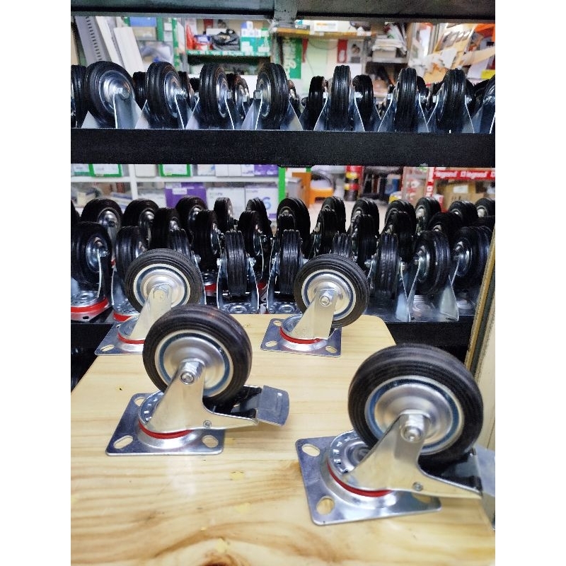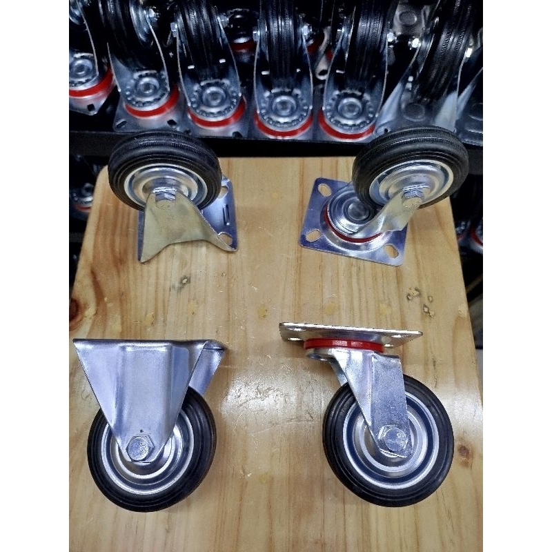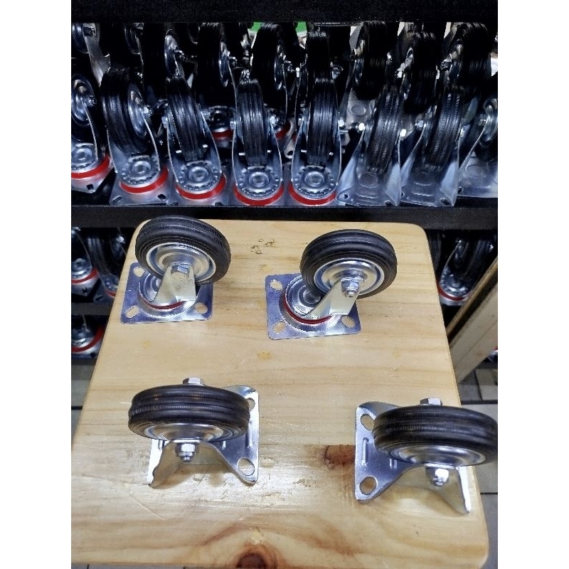RKS - Roda 3" inch Karet 1set ( 4pcs ) ( 2 Hidup + 2 Mati) Roda troli Gerobak 3 inchi