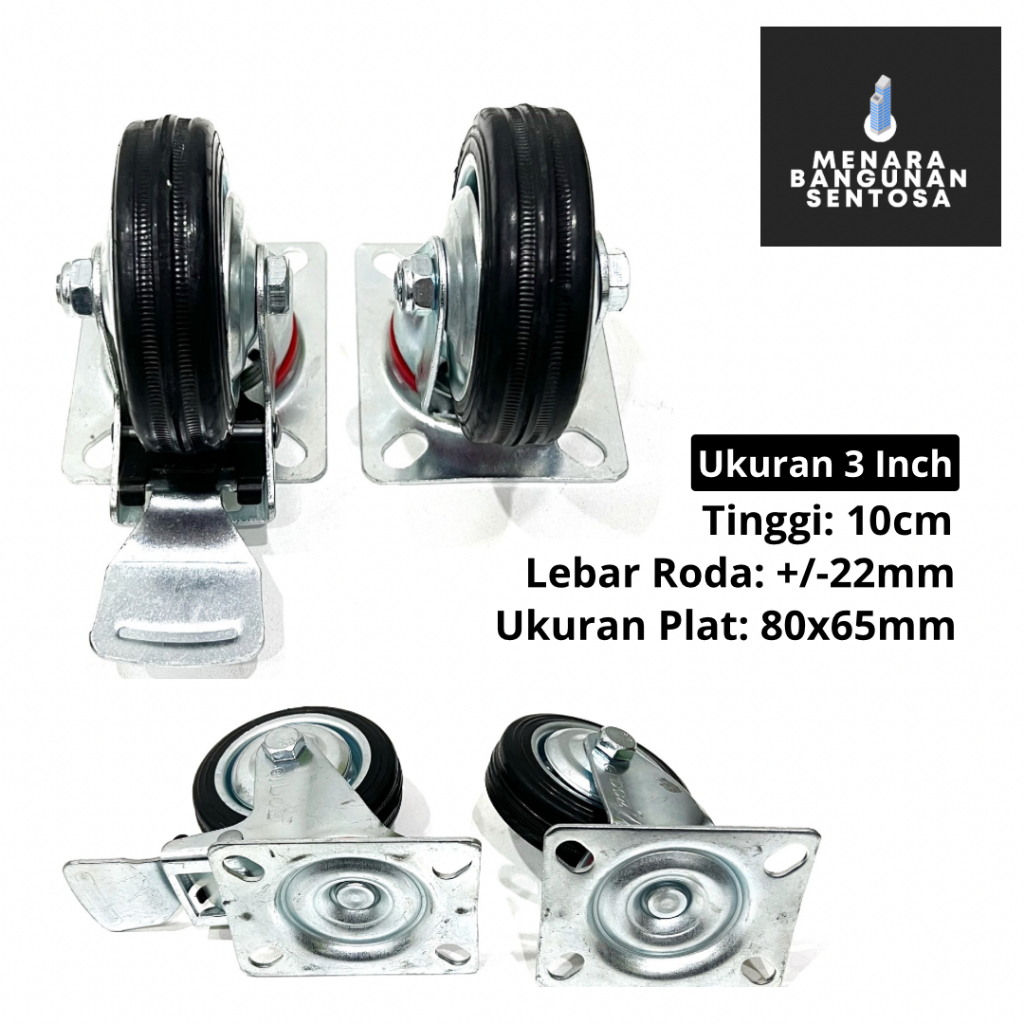 Roda Karet Hitam Hidup 3 Inch - Roda Troli Trolley Etalase Gerobak