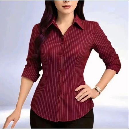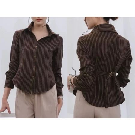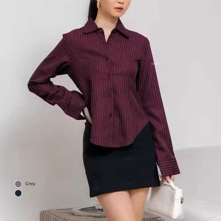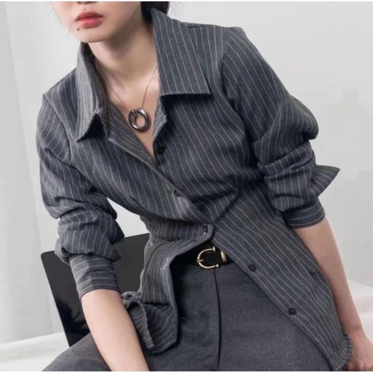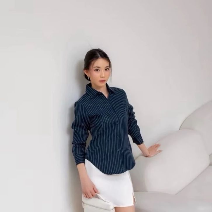 KEMEJA WANITA TERBARU DAN KEKINIAN WISPIE WANITA SLIM FIT SEMIWOLL STRIPE ATASAN WANITA KEMEJA WANITA FITT BODY