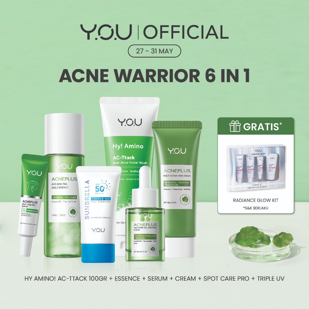 Satu Paket Skincare YOU Acne Warrior 6IN1 Glowing Mencerahkan BPOM BEST SELLER
