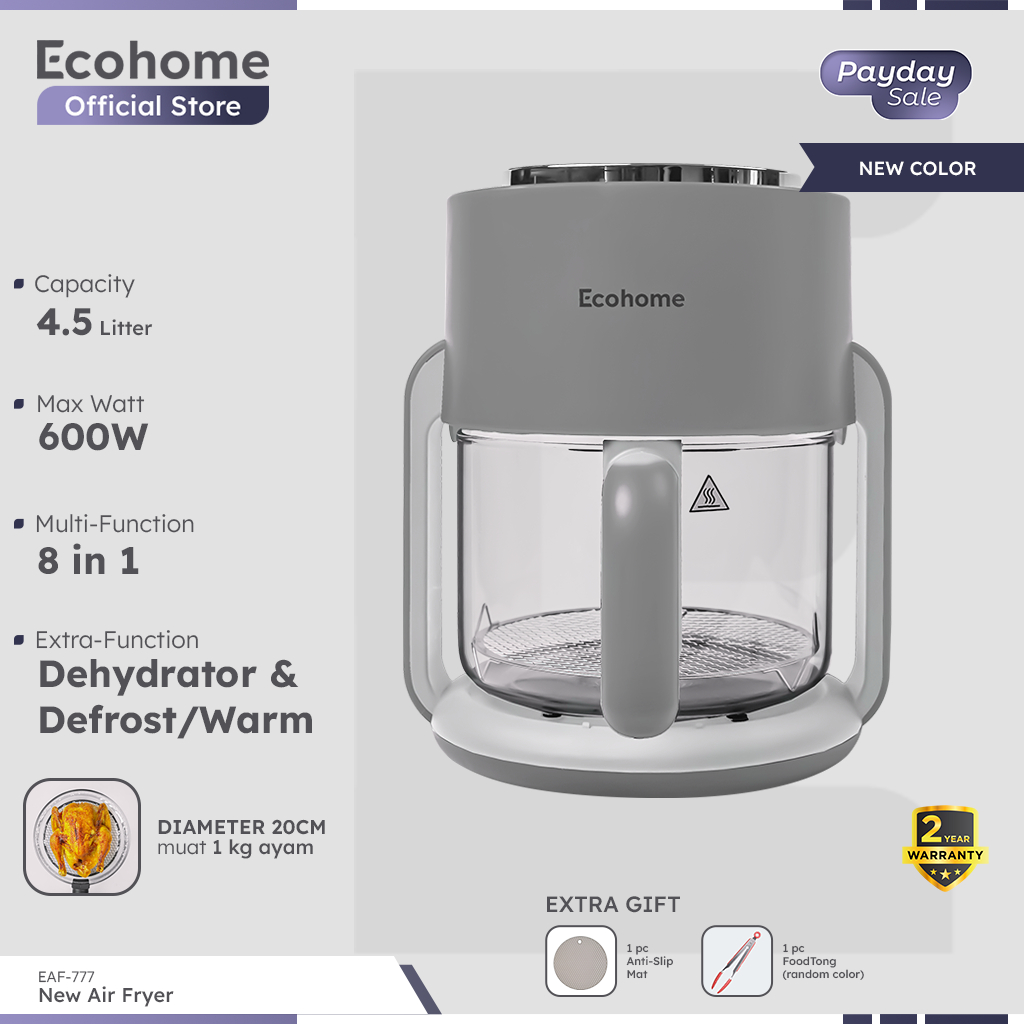 ECOHOME Air Fryer & Dehydrator 8 in 1 Function EAF777 4.5L Capacity with Panoramic Glass 360° View 5.0 1,6RB penilaian