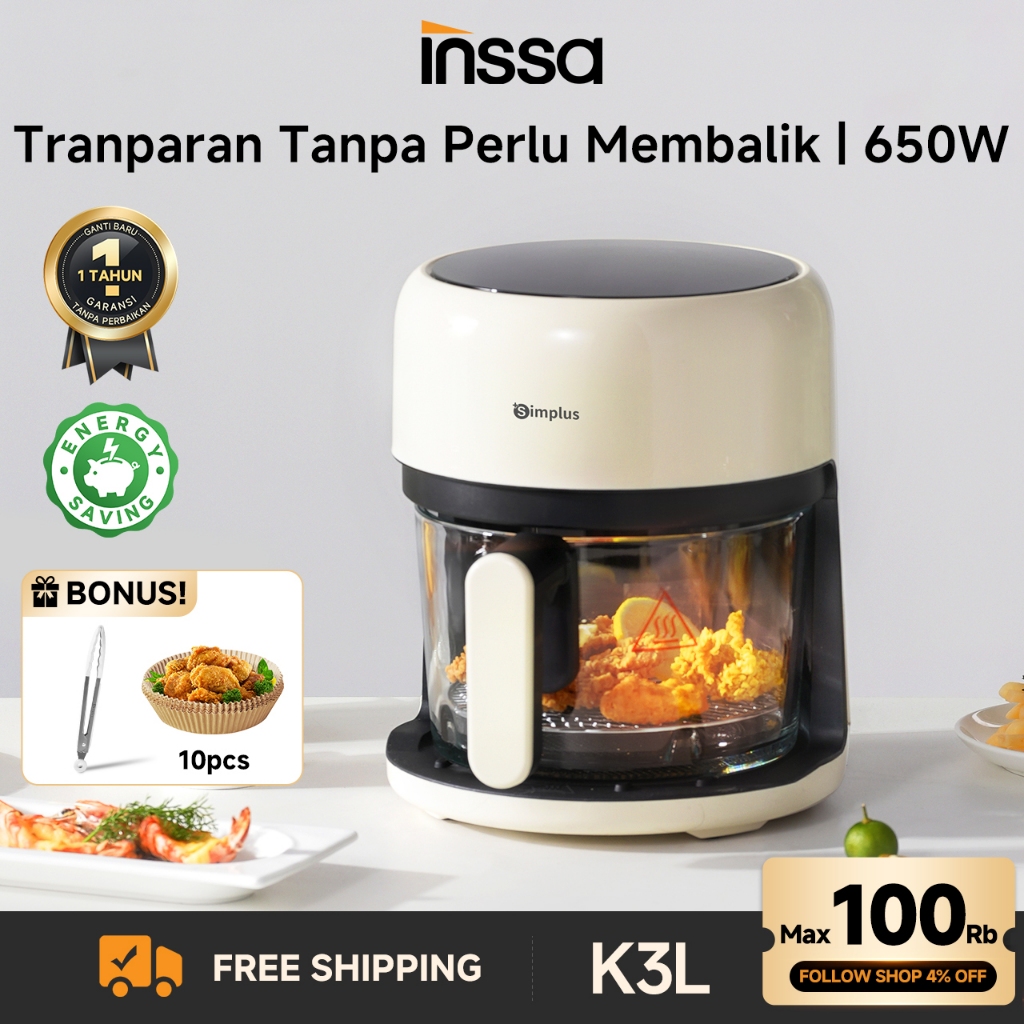 INSSA X Simplus Air Fryer Low Watt 650W 3.5L Digital Touch Screen Panoramic Glass 360 View
