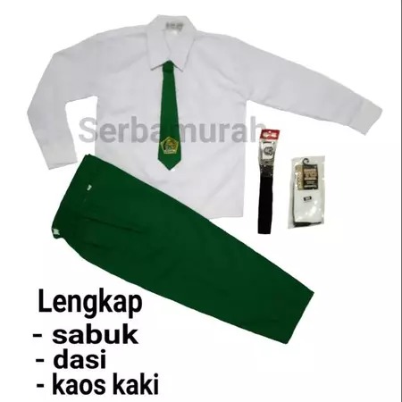 Setelan seragam sekolah mi putih hijau lengan panjang celana panjang / Baju seragam sekolah mi putih hijau anak laki lak