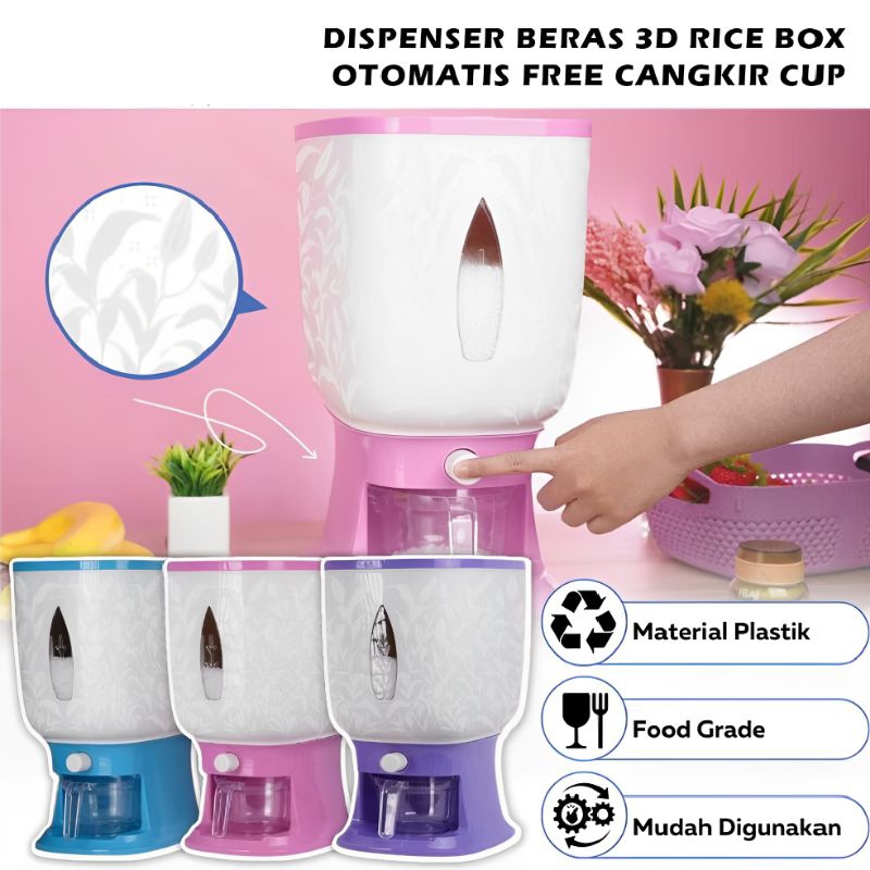 HOMEWARE Dispenser Beras Otomatis 3D / Rice Box Otomatis Free Cangkir Cup