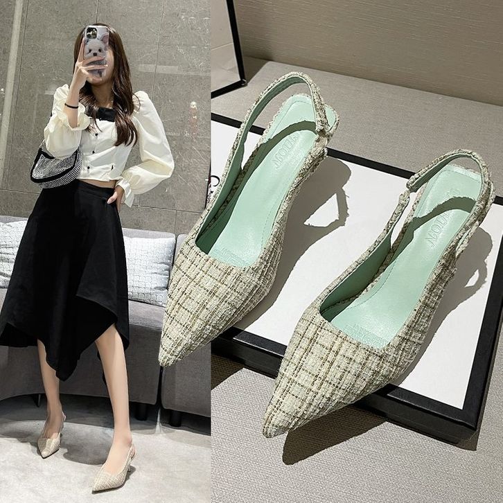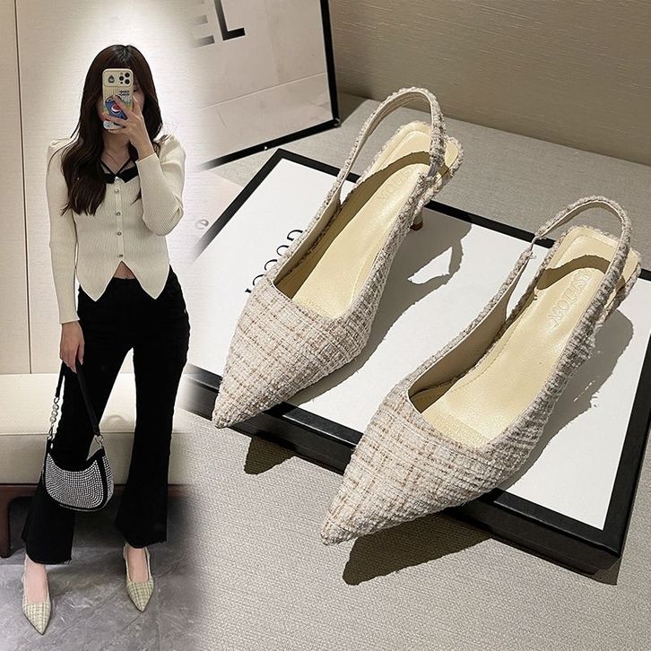 Heals Sepatu wanitaSling Back Fashion Wanita Sepatu Hak Tinggi Sepatu Hak Pesta Tweed