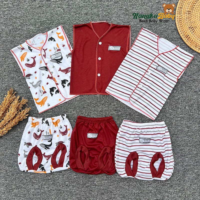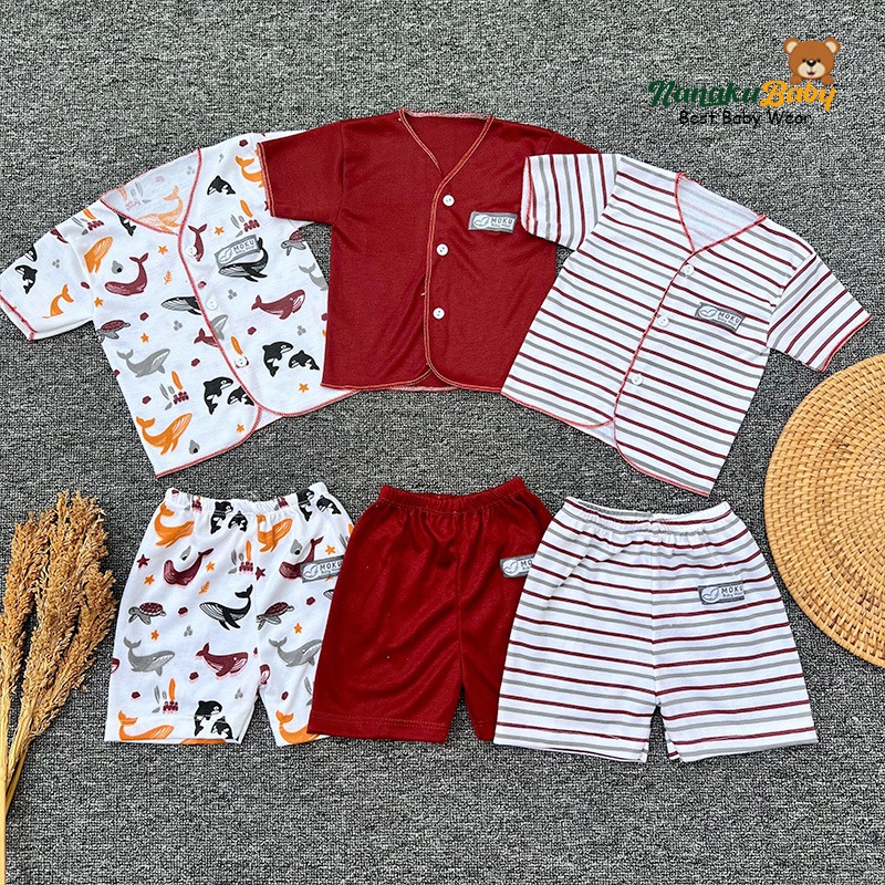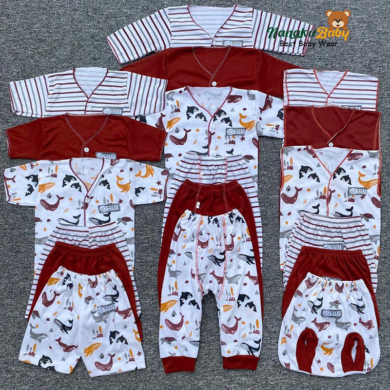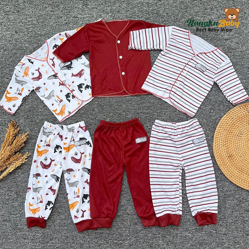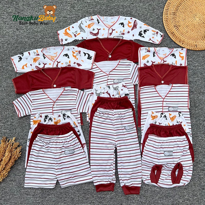 Nanaku Baby - Set Paket Newborn Isi 18 PCS Setelan Baju Celana Bayi Motif Unisex Serie Maroon Usia 0-3 Bulan