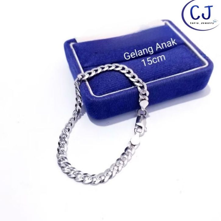 Gelangg Anak Perak Asli Silver 925 Lspis Emass Putih Asli Rantai Sisik Naga Ukir - Gelangg Anak Anti Karat