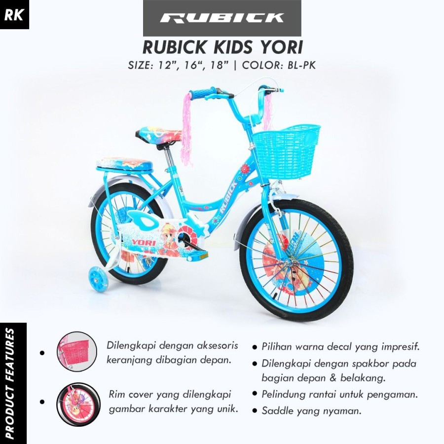 Sepeda Mini keranjang 12 16 18 Inch Rubick By United Keranjang Anak Cewek Usia 3-9 Tahun