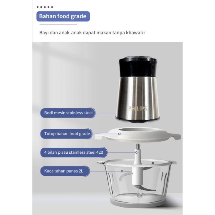 Chopper Philips Daging Blender Bumbu daging Electric 400W 2L Setanlis/Metal 304 Meat Grinder Food Processor