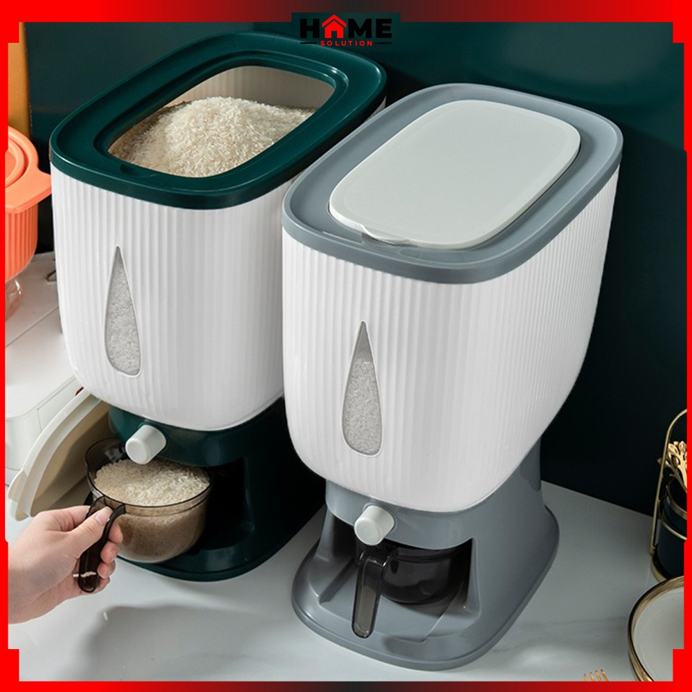 Dispenser Beras 10 KG Rice Dispenser Tempat Wadah Penyimpanan Beras Otomatis Dengan Wadah Pengering Beras Serbaa Home So
