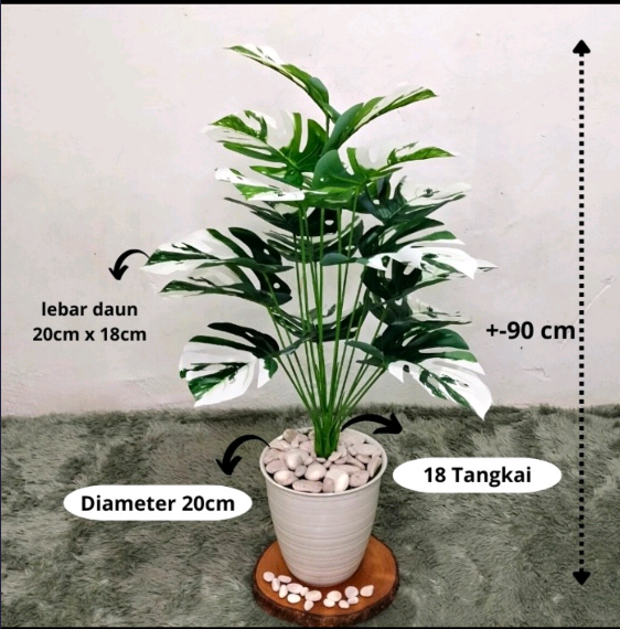 DAUN ARTIFISIAL DAUN DEKORASI RUMAH CAFE KANTOR HALAMAN 1 SET DAUN MONSTERA JUMBO PLASTIK + POT MONSTERA CORAK PUTIH