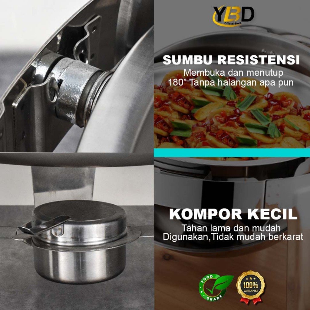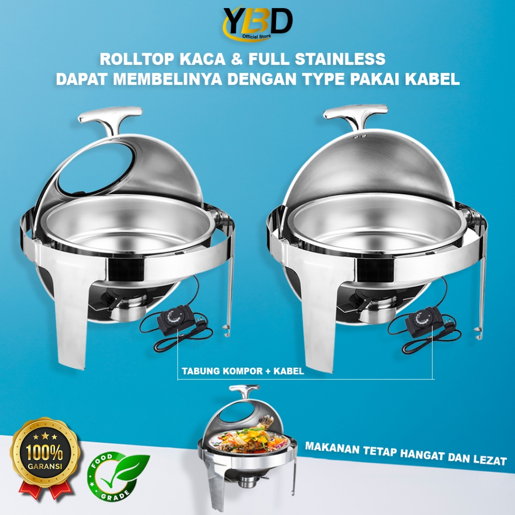 Prasmanan Roll Top Stainless Steel 6.8 Liter Tutup Stainless & Tutup kaca | Roll top prasmanan bulat Gold & silver | Per