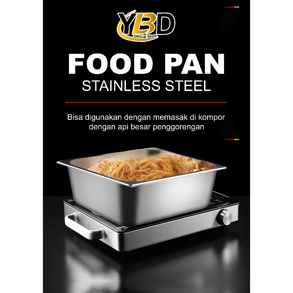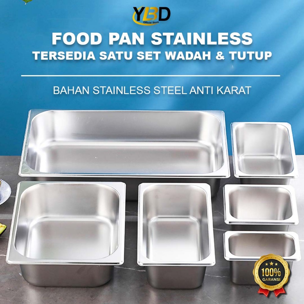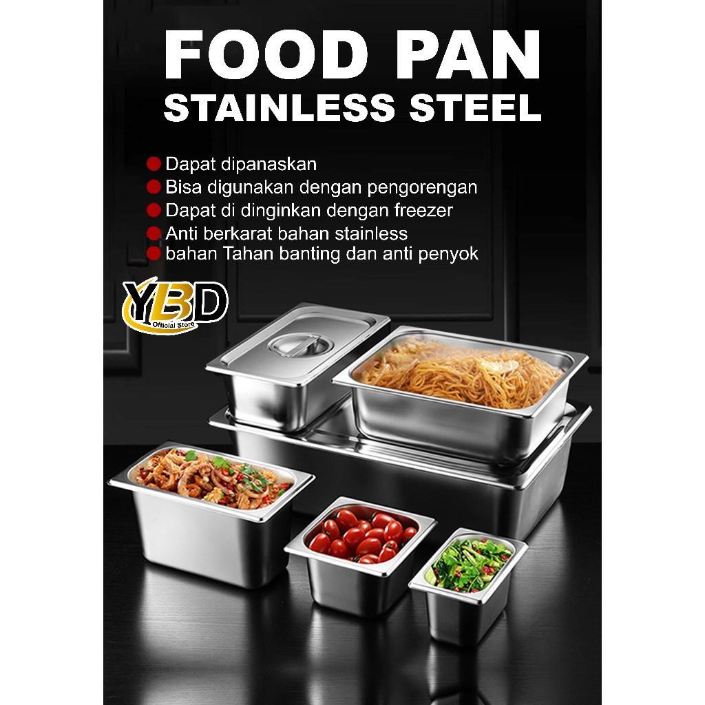 FOODPAN Stainless + Tutup Tersedia ukuran ( 1/1 x 6.5 - 10 - 15 || 1/2 x 6.5 - 10 - 15 || 1/3 x 6.5 - 10 - 15 | 1/4 x
