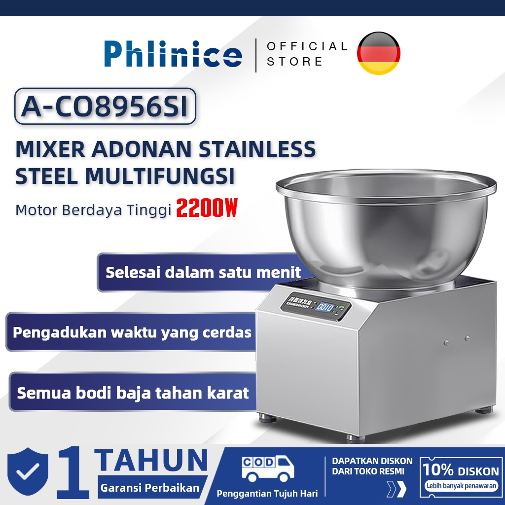 Phlinice Pengaduk Adonan Multifungsi Komersial/Rumah Tangga Pengaduk Adonan Otomatis Penuh 5 8 12 15Kg Pengaduk Tepung H