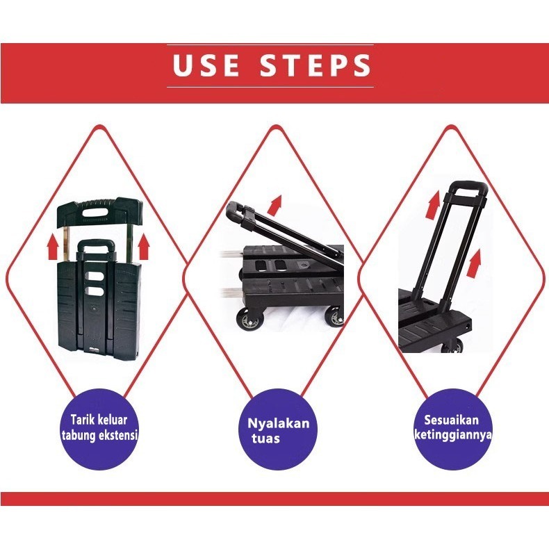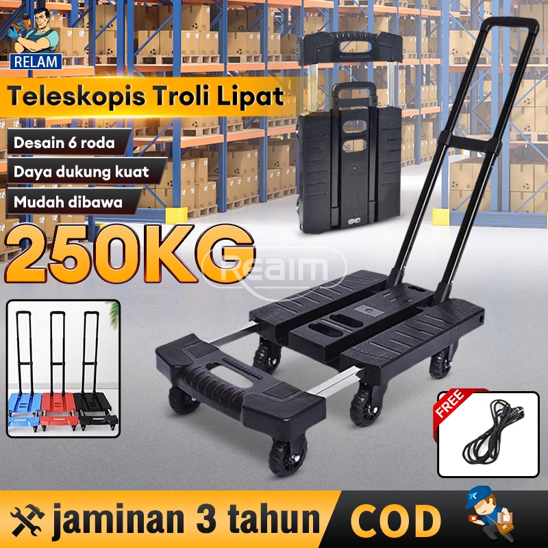 Reaim 200KG Folding Trolley 6 Wheels Multi Purpose Folding Trolley Troli Furnitur Cargo Folding Trolley Troli Portabel