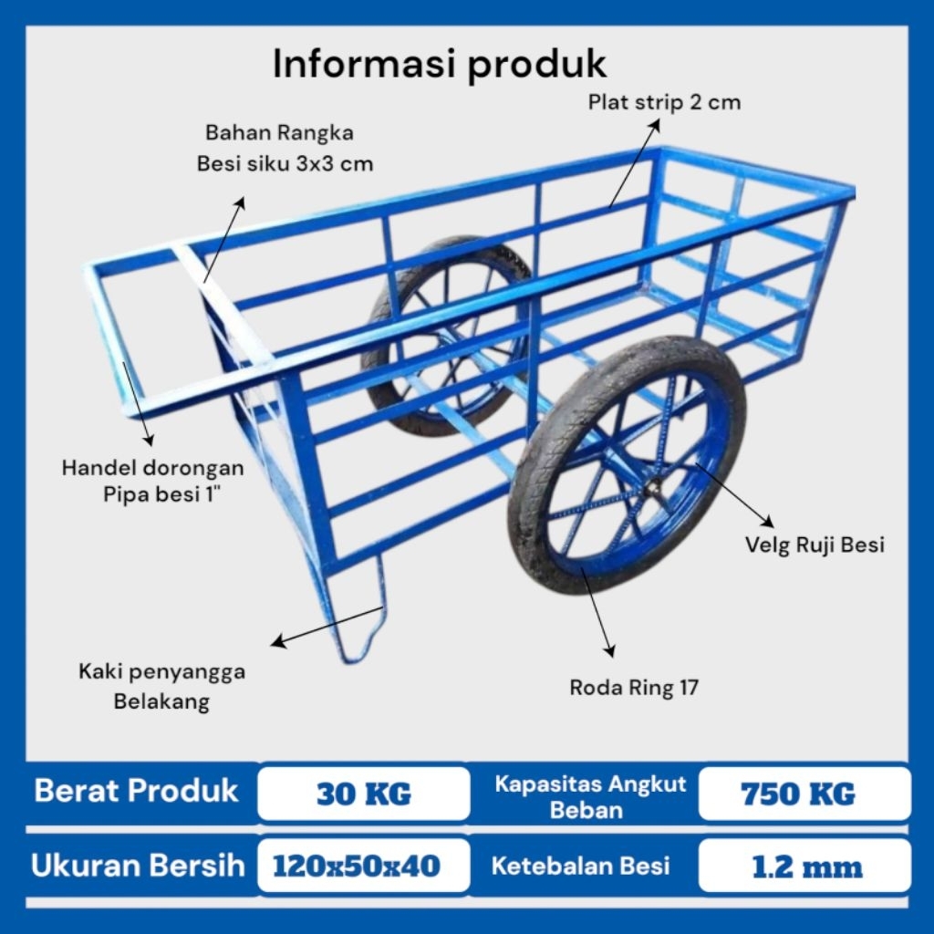 Gerobak Barang Dorong Serbaa Roda Dua 120x50x40cm