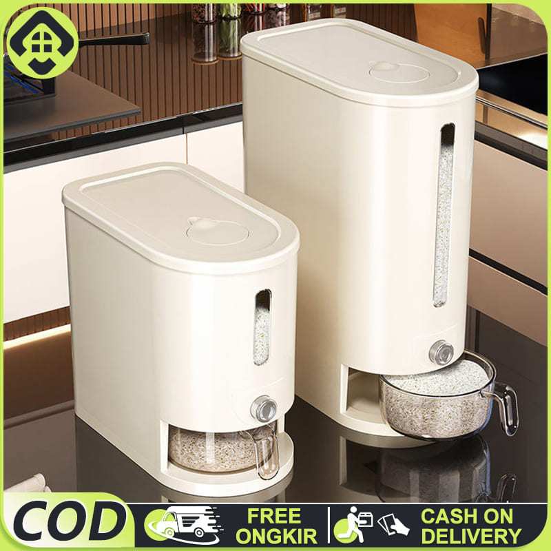 SALVO 10/20KG Dispenser Beras Otomasi Anti Kutu 10KG/20KG Tempat Penyimpanan Beras GRATIS Mangkok Cuci Beras/Rice Bucket