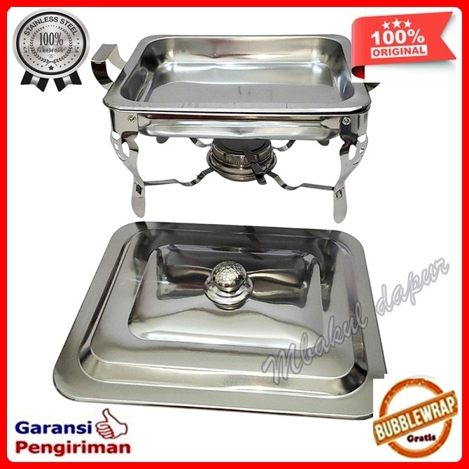 Prasmanan Stainless Wadah Saji Stainless Plus Kompor Penghangat 3.5 Liter Mirror Polish