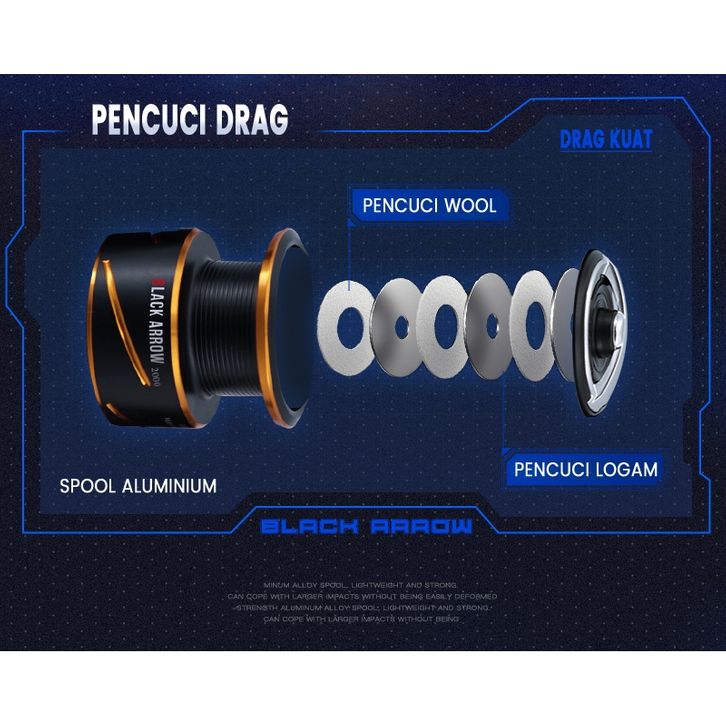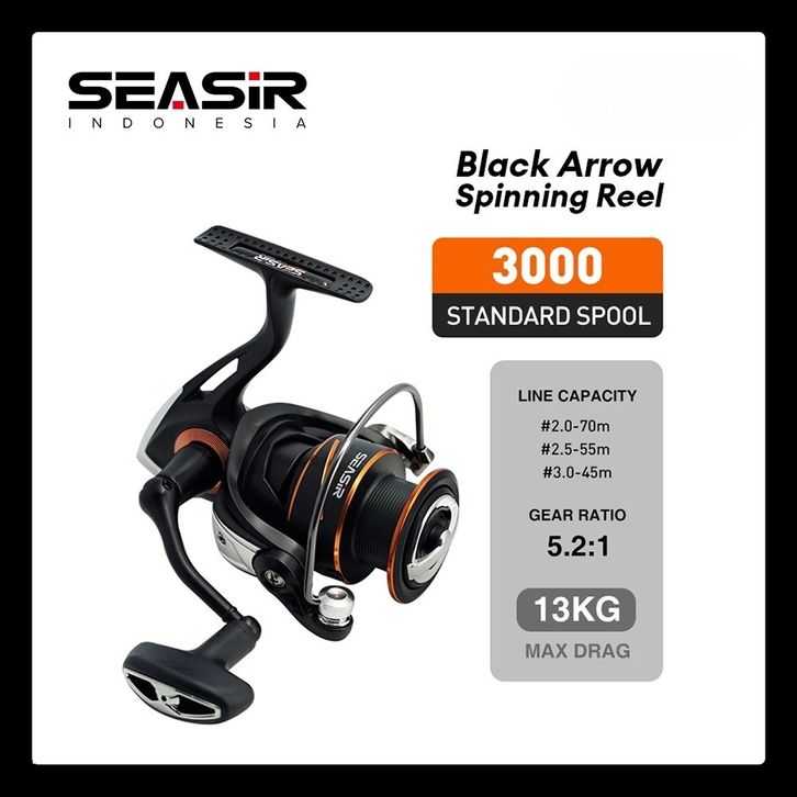 Gulungan Pancing Seasir Black Arrow Reel Pancingan Putar Power Handle Spinning 1000-3000