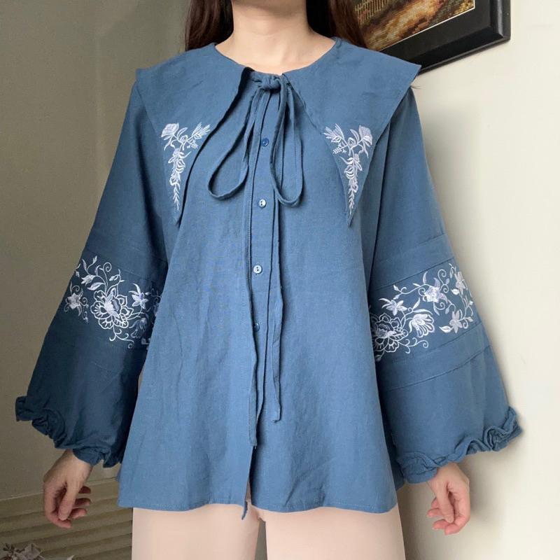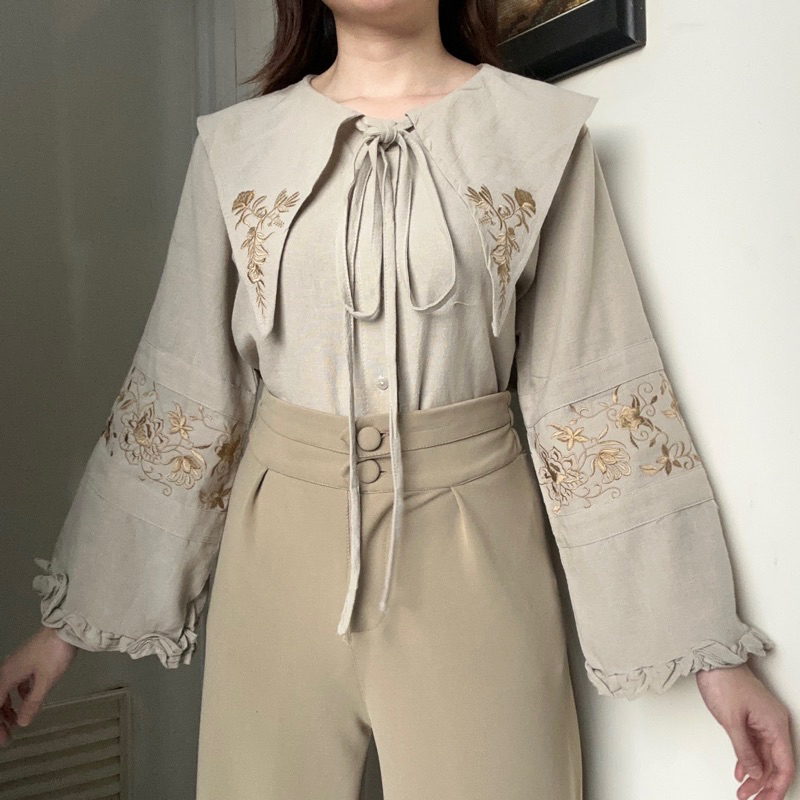 Aurora Top Atasan Kemeja Blouse Wanita Linen Korean Style by Biel The Label