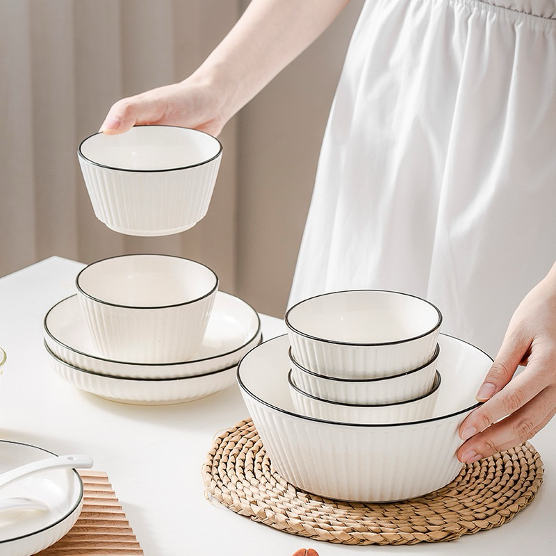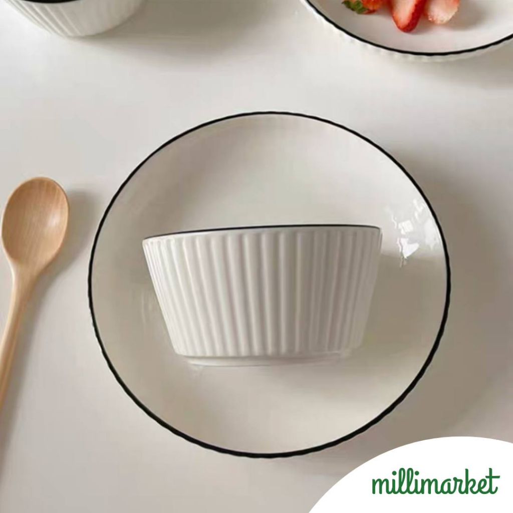 [MILLI] EMMA SERIES / Piring mangkok keramik set putih list hitam / Korean aesthetic plate bowl set