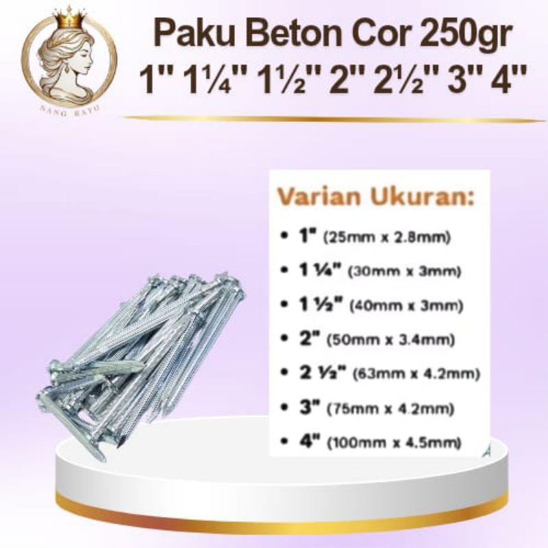 Paku Beton / Paku Cor Putih 250gram 1" 1¼" 1½" 2" 2½" 3" 4"