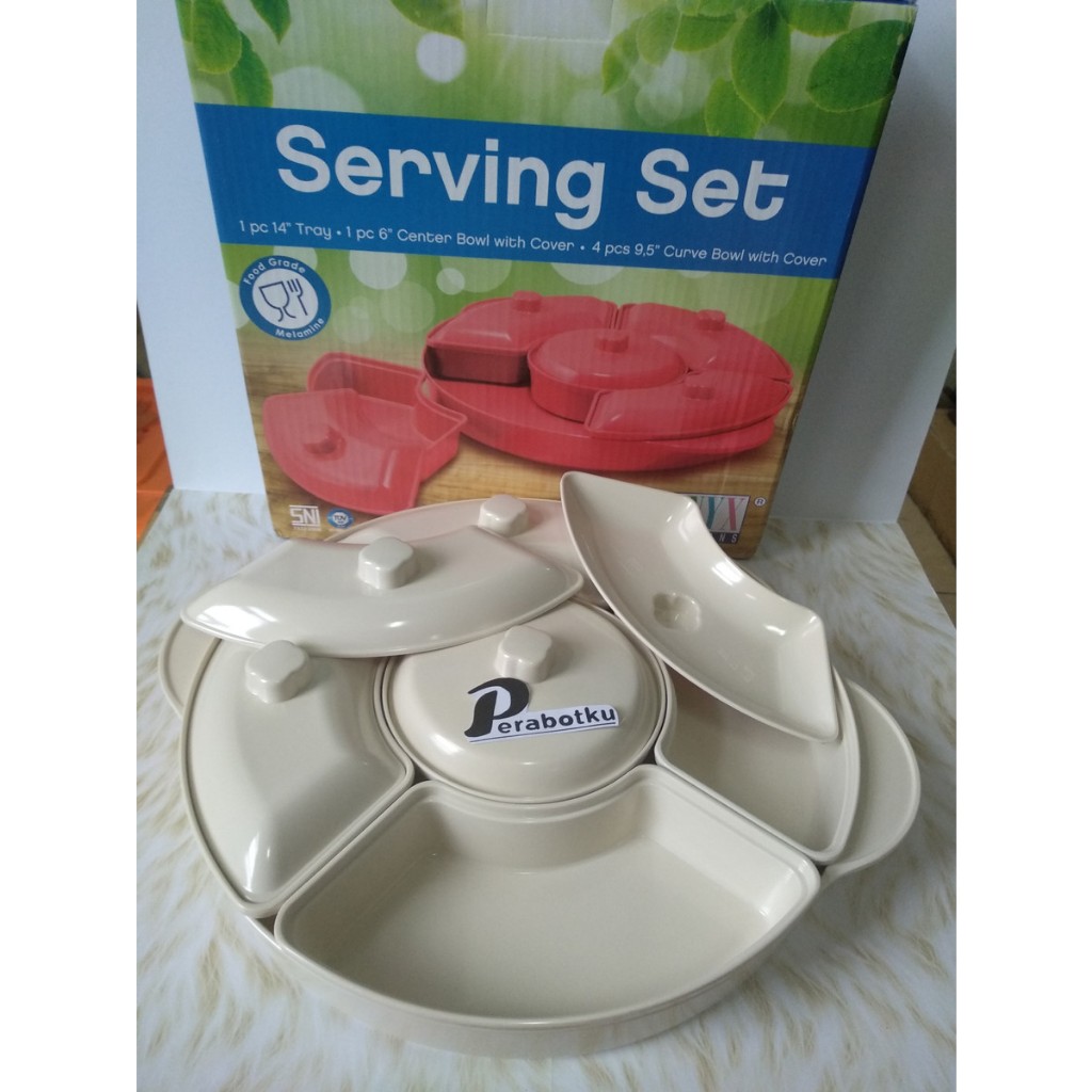ONYX PSB01 Prasmanan 14" Party Set Melamin saji tutup Bulat 35 cm CREAM , PUTIH , ABU-ABU