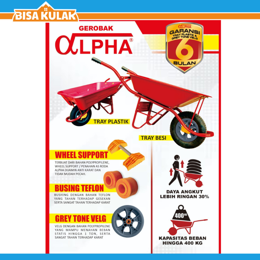 GEROBAK DORONG / ANGKONG - ALPHA BAK PLASTIK TEBAL ANTI PECAH