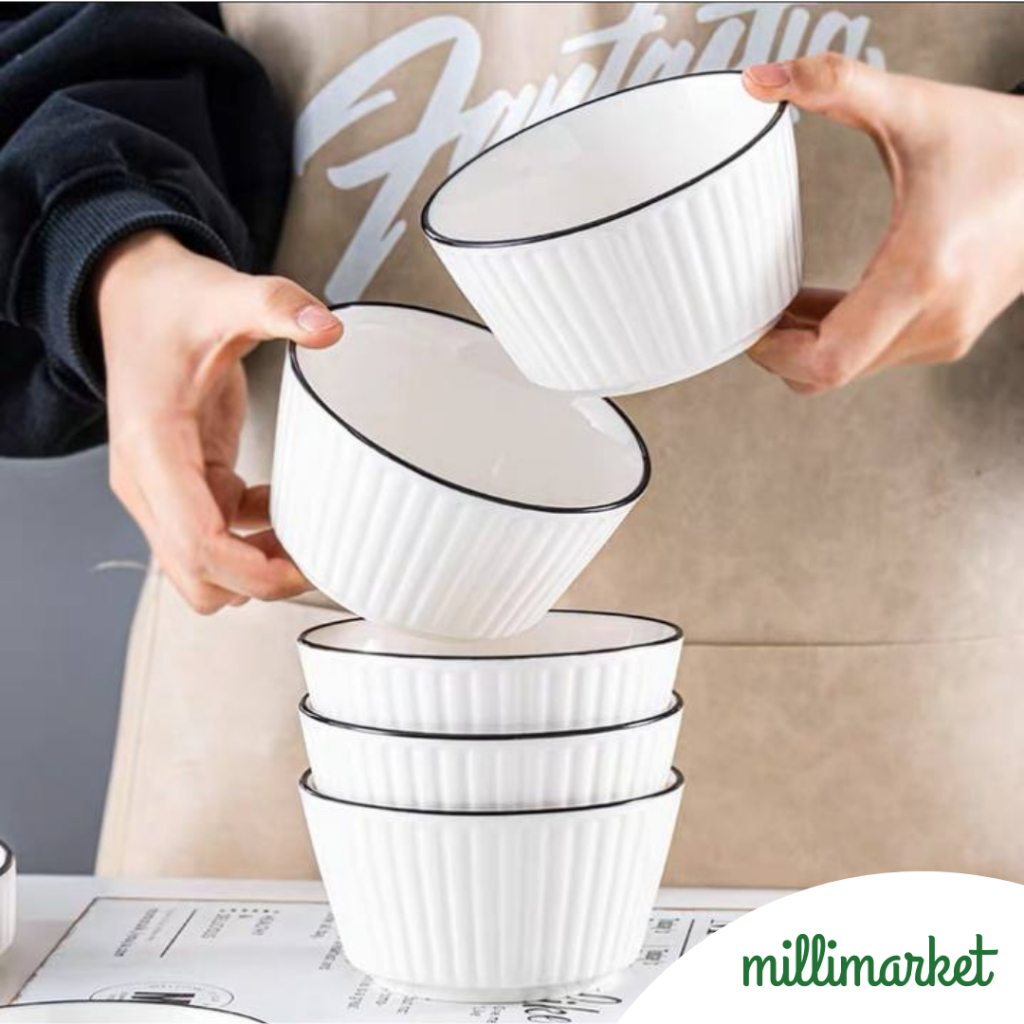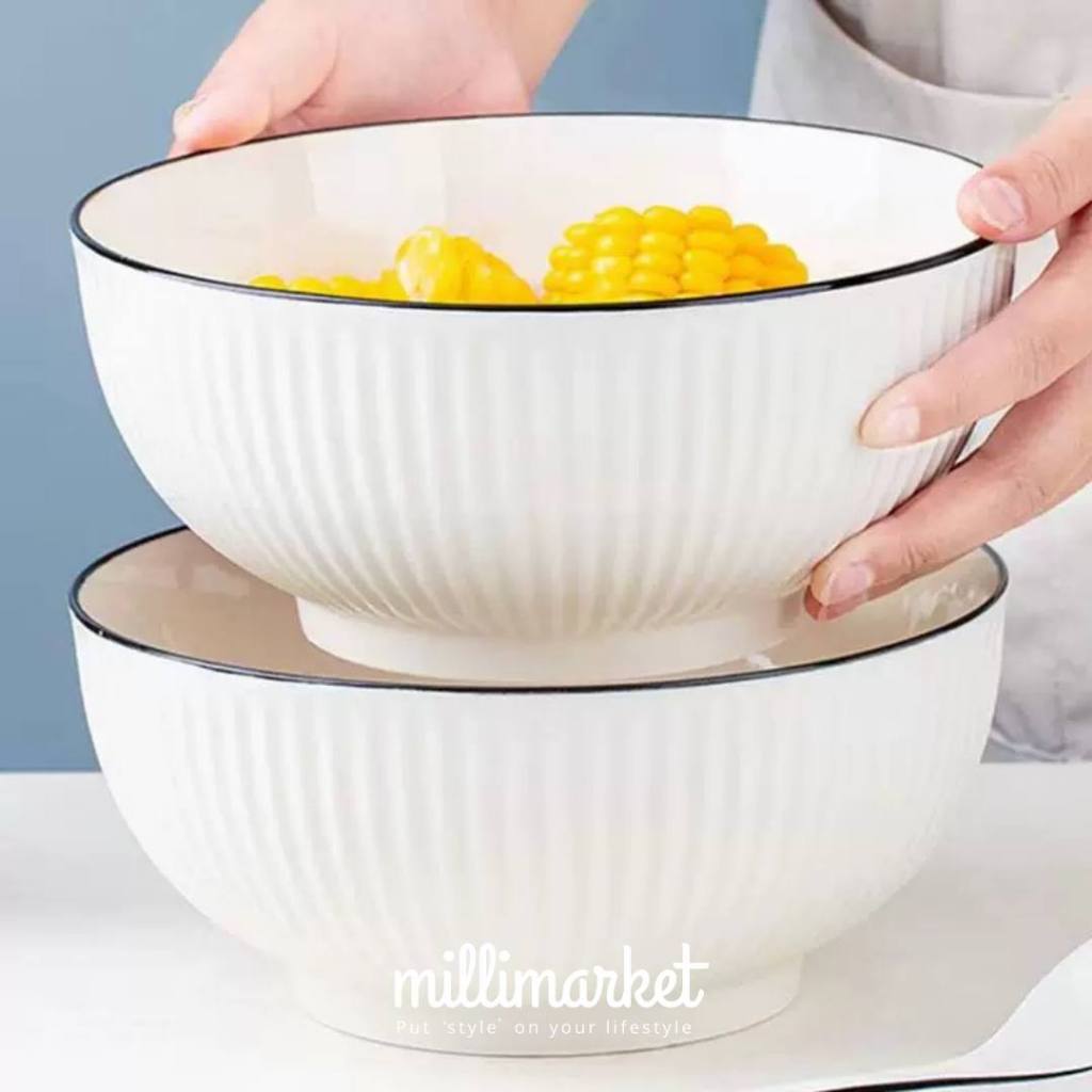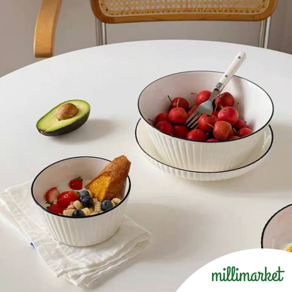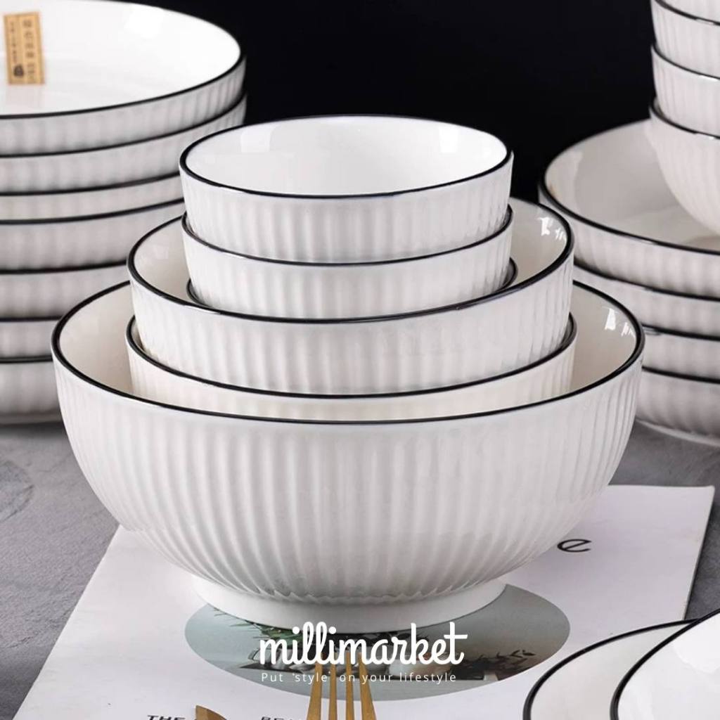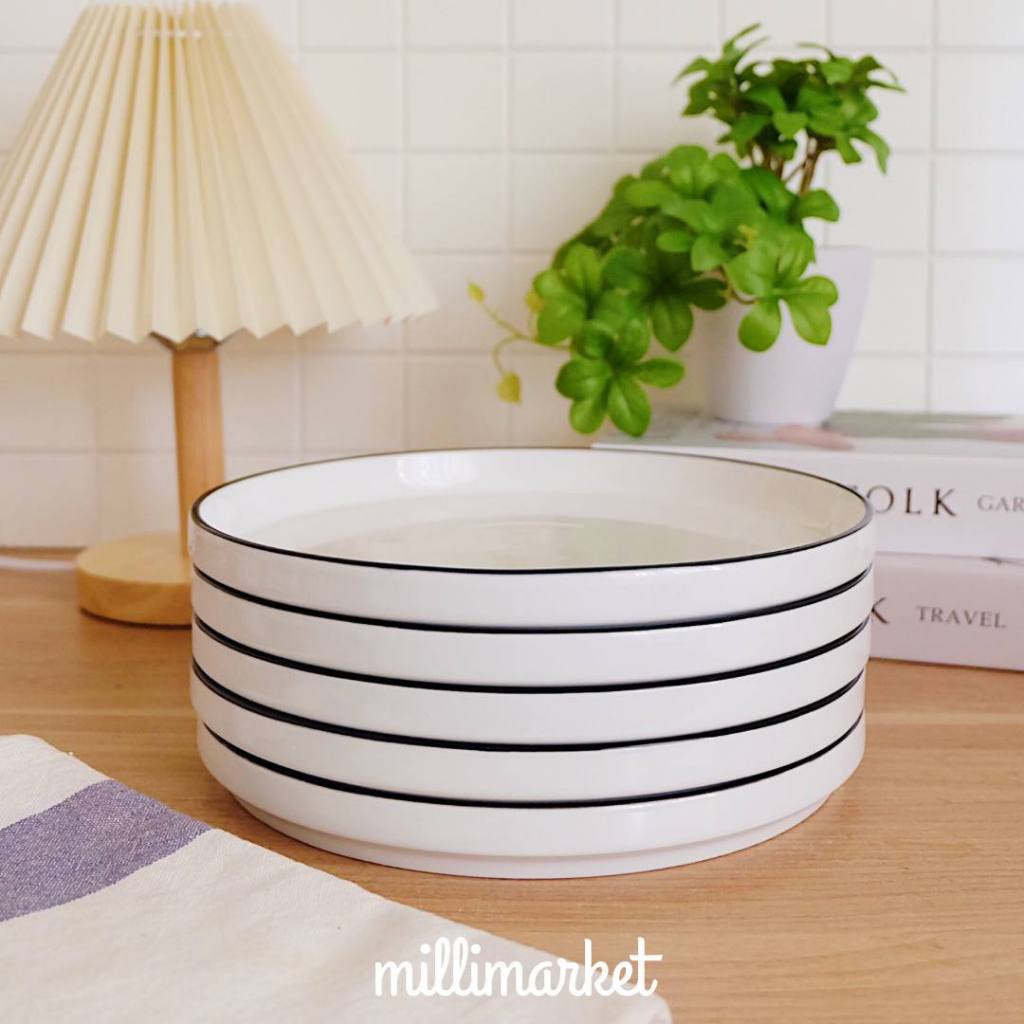 [MILLI] EMMA SERIES / Piring mangkok keramik set putih list hitam / Korean aesthetic plate bowl set