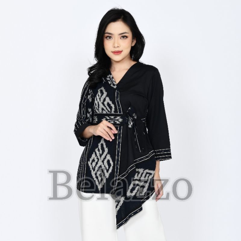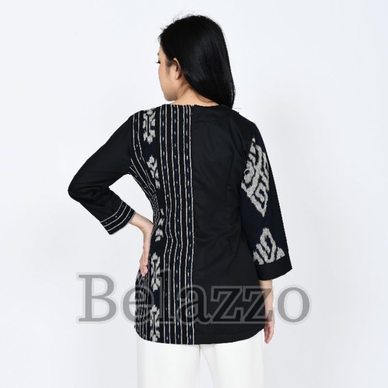 Baju Atasan Blouse Batik Tenun Etnik Wanita Modern Warna Hitam Terbaru - Baju Tenun Wanita - Blus Tenun Wanita Jepara -