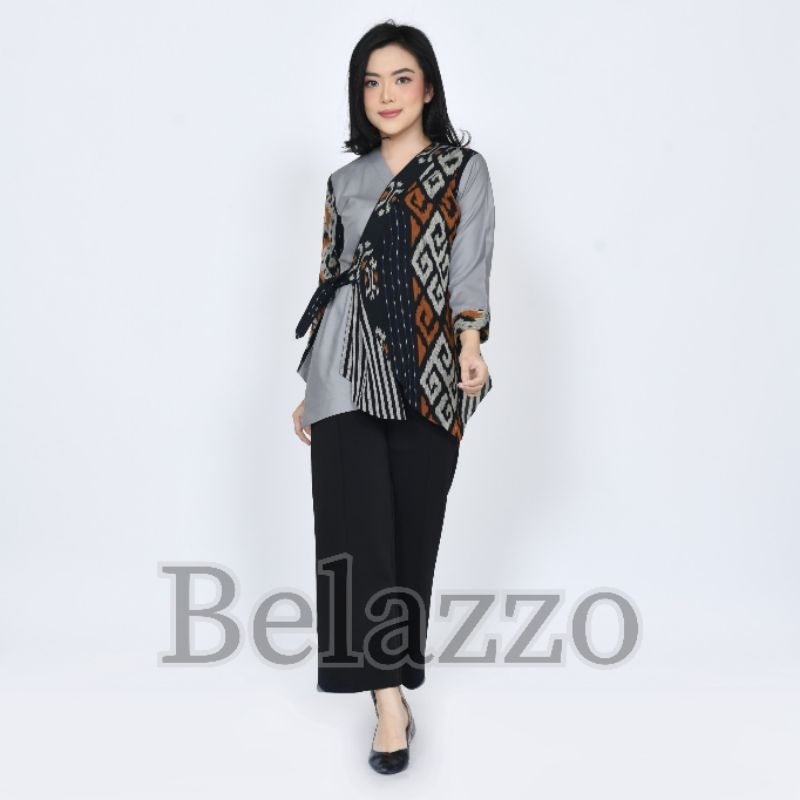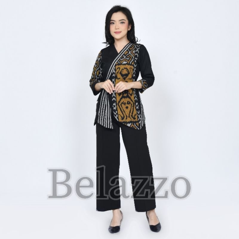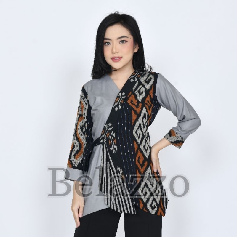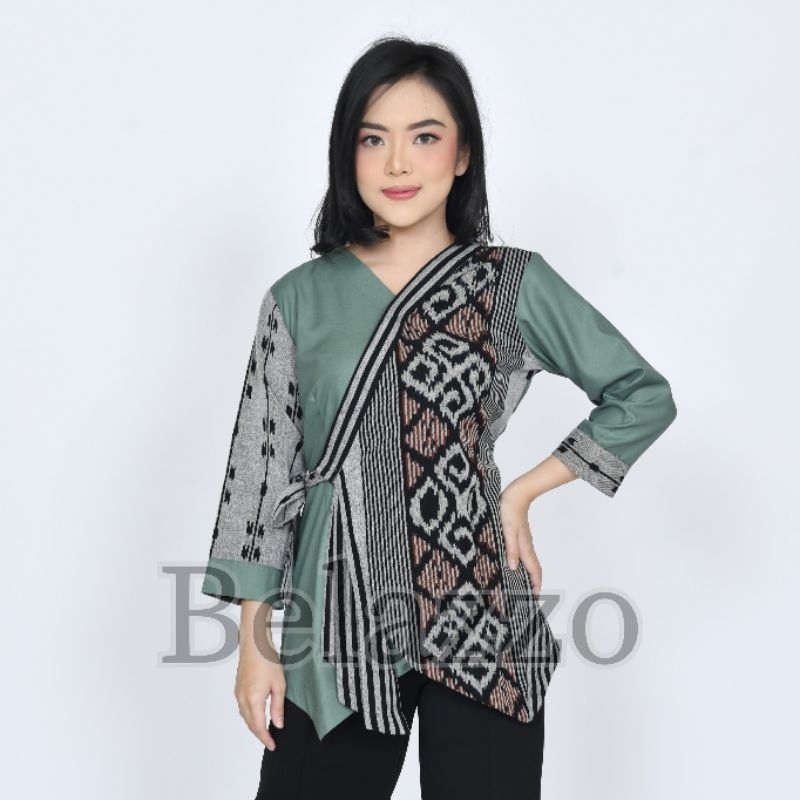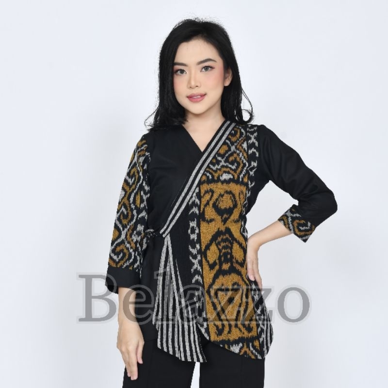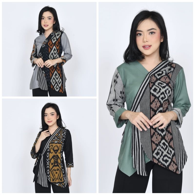 Baju Atasan Kemeja Blouse Batik Tenun Etnik Wanita Modern - Baju Tenun Wanita - Blouse Tenun Etnik Jepara - Atasan Tenun
