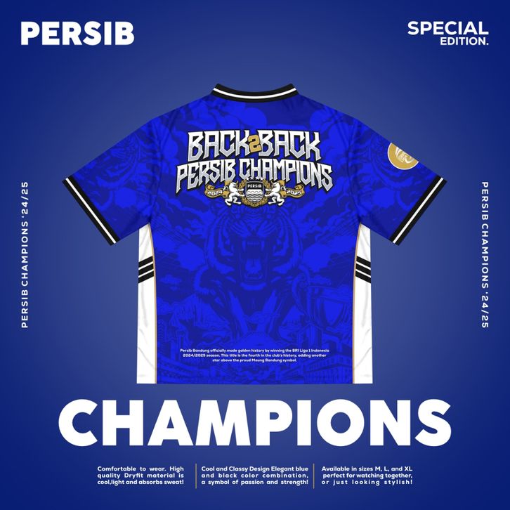 Jersey Persib Juara 2025 Persib Champions Baju Persib Kaos Persib Jersey Bobotoh Atasan Pria Jersey Vintage Pe