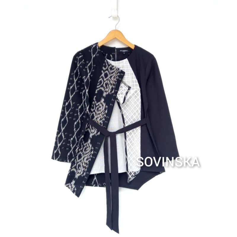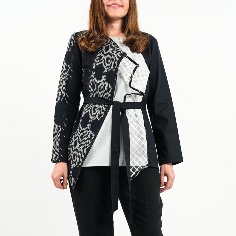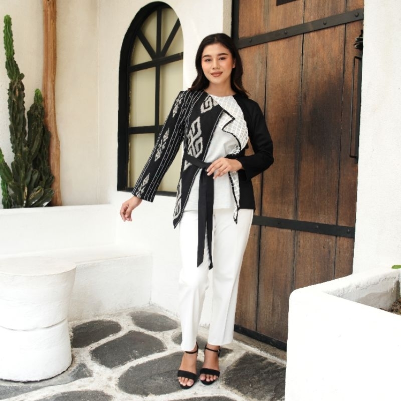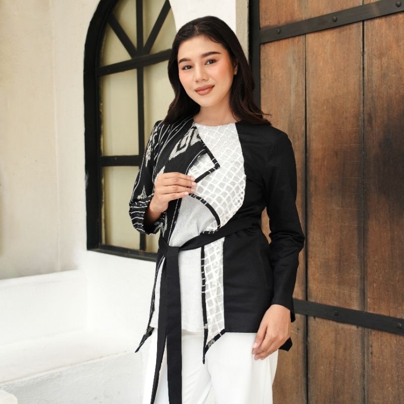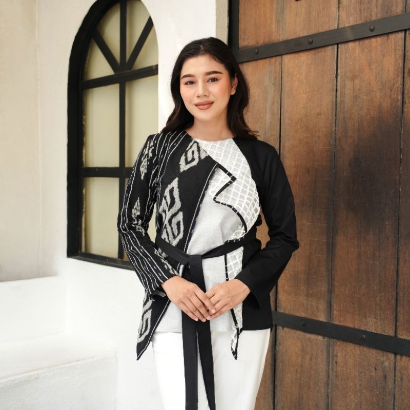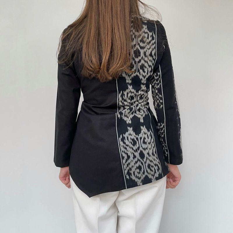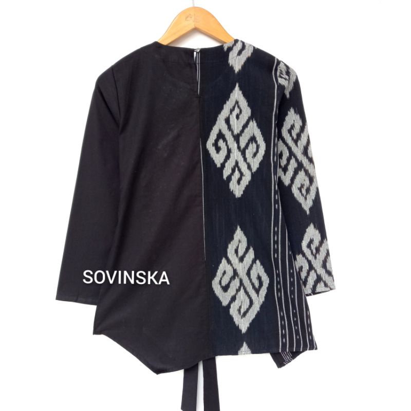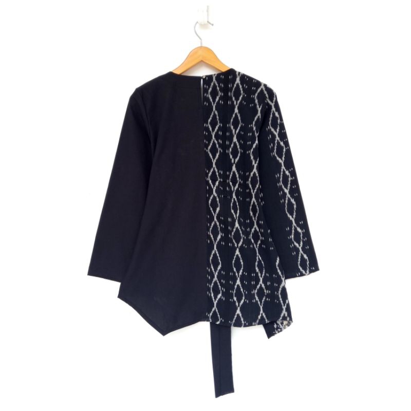 Atasan Tenun WP 132 Hitam New Blus Blouse Baju Kerja Wanita Tenun Modern