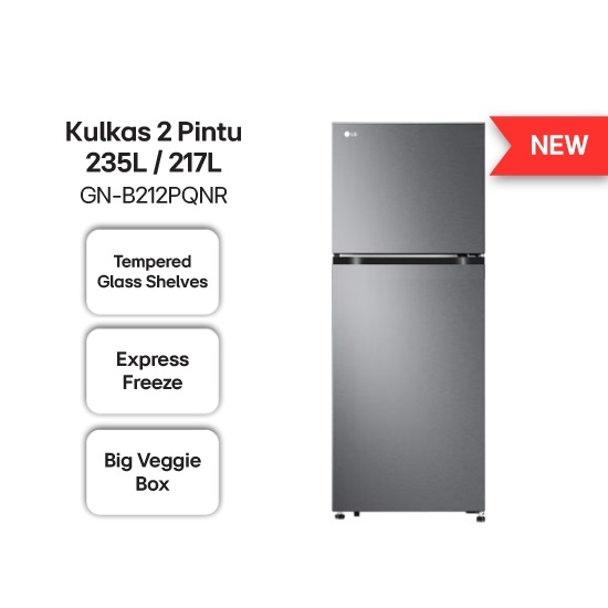 Kulkas 2 Pintu 235L / 217L - Shelf Tempered Glass - Express Freeze - Dark Graphite Steel - Model GN-B212PQNR