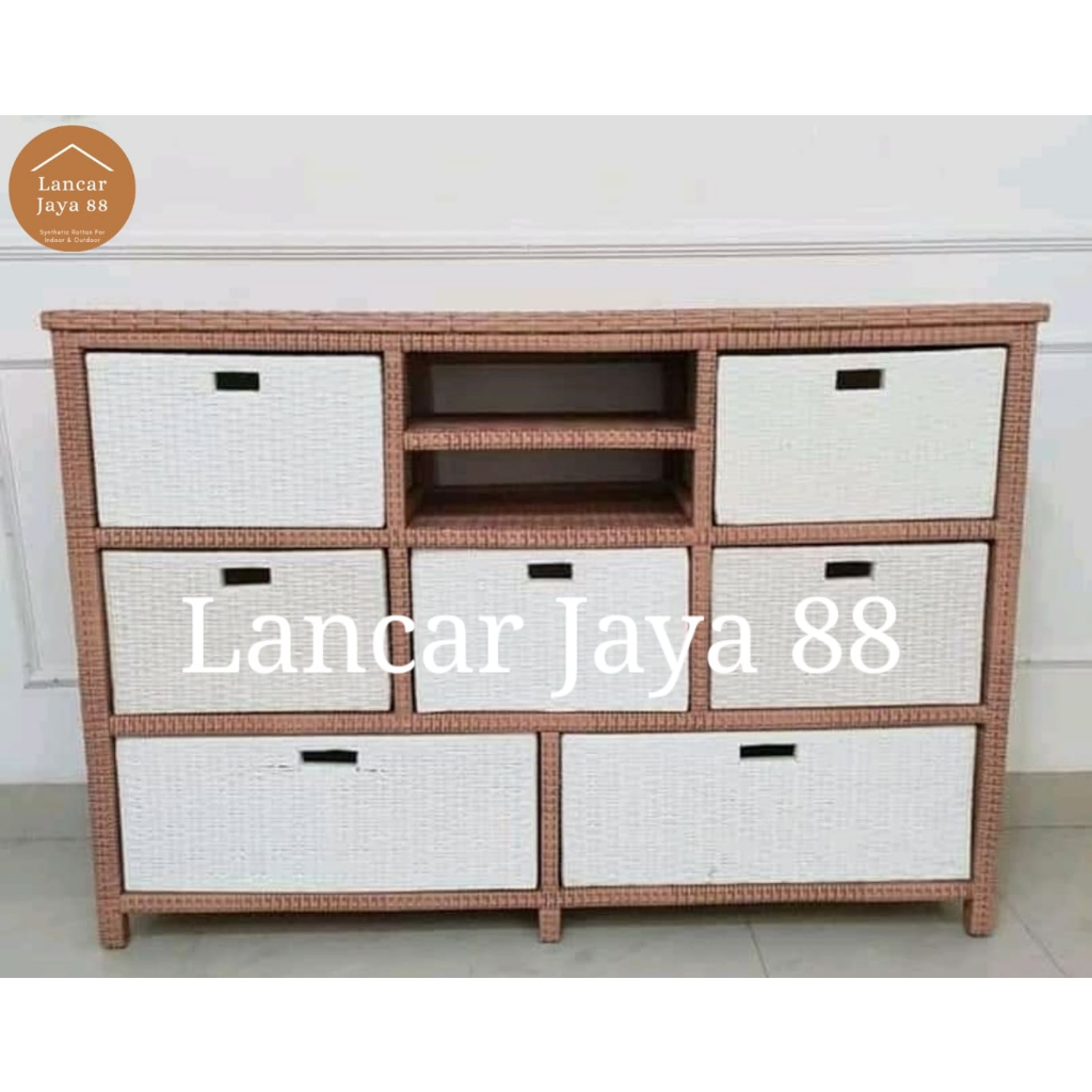 Meja Tv Rotan 7 Laci Meja Rak Receiver Lemari Plastik Susun Rotan Sintetis Lemari Tv Rak Tv Buffet
