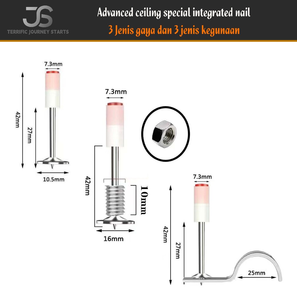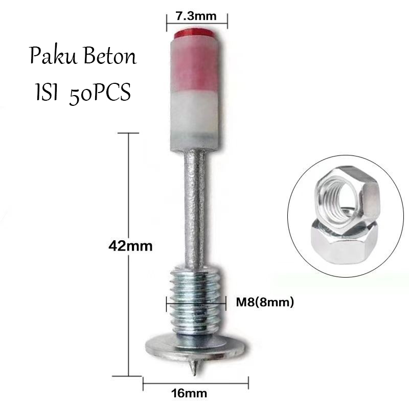 Top JS Paku Beton besi kayu Ramset Paku Kecil 7.3mm Ring 1 pcs Paku beton mini diameter 7,3 mm