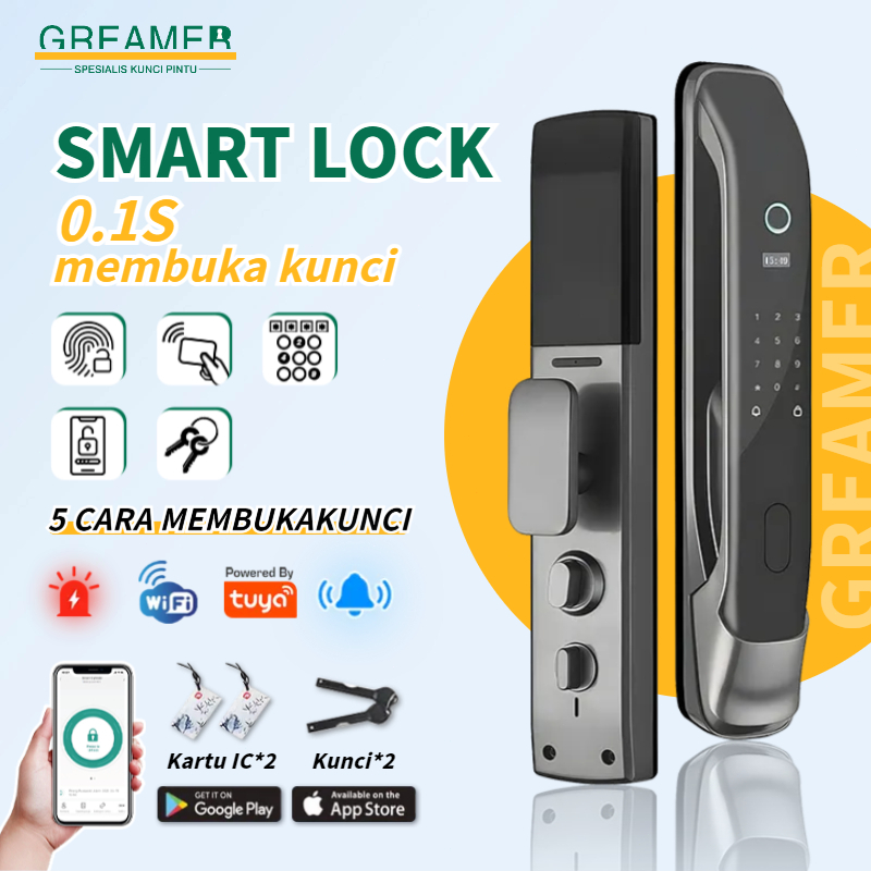 GREAMER Kunci Pintu Rumah Smart Door Lock Digital Sidik Jari Gagang Pintu Kamar Handle Pintu Set Lengkap DF3/DF8