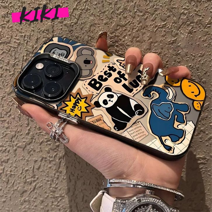 Casing Iphone Kompatibel 11 Motif Gajah dan panda yang bahagia 7 plus 8 plus x xr xs max 11 pro 12 13 14 15 16 11promax