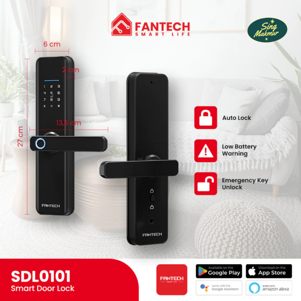Fantech SDL0101 Smart Life Door Lock Home Finger Print Door Handle Pintu Original
