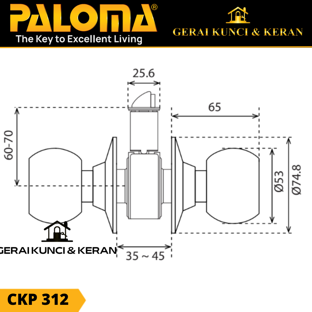 KUNCI PINTU KAMAR MANDI BULAT PALOMA CKP 312 ET KUNCI BULAT WC TOILET CYLINDRICAL KNOB