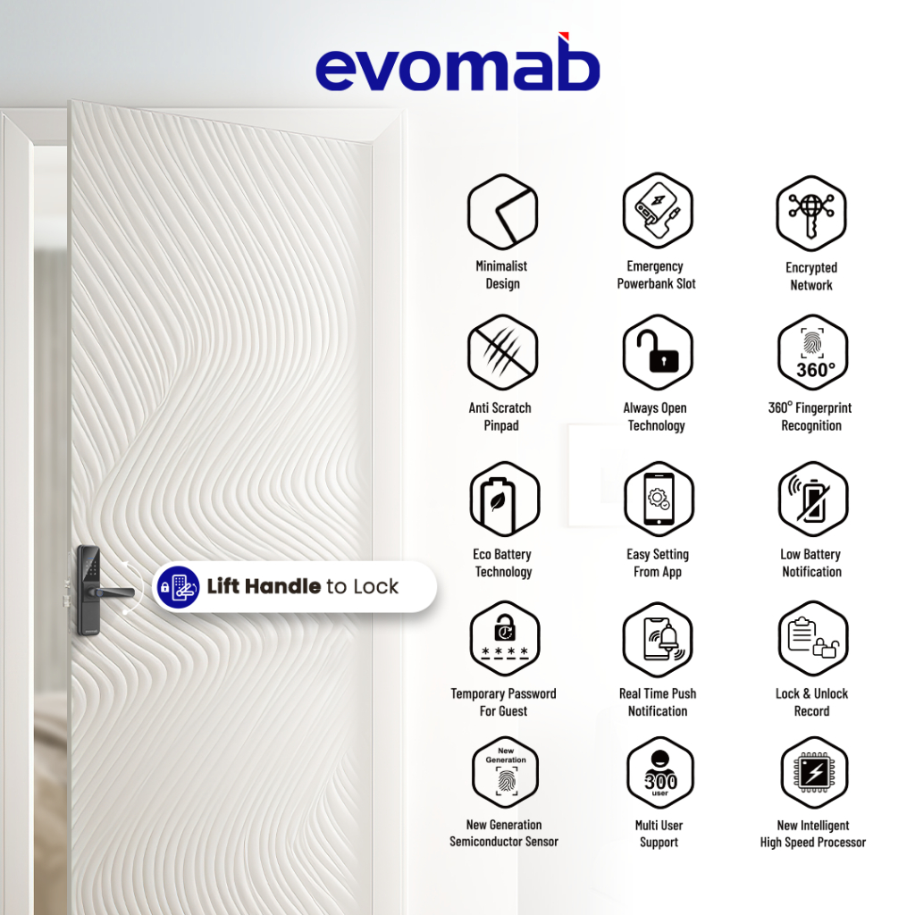 Evomab Smart Door Lock Handle Pintu Kunci Digital Wifi Aplikasi Tuya EDLK-MK4A