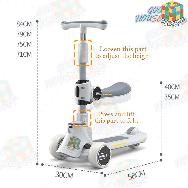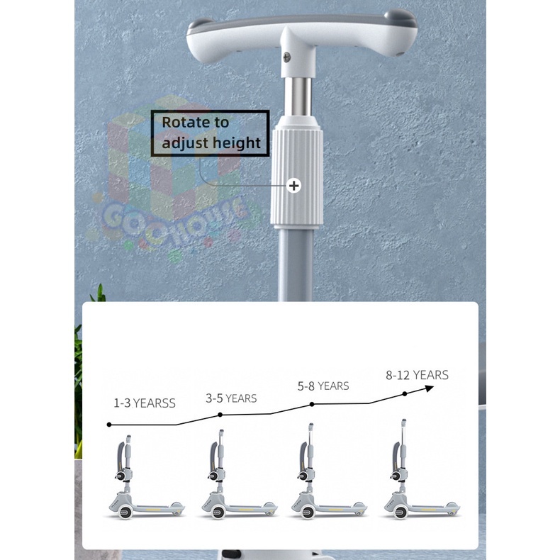 Skuter Anak 3 in 1 Skuter Anak Perempuan Skuter Lipat Scooter Anak Musik Skuter Anak Roda 3 Kids Scooter