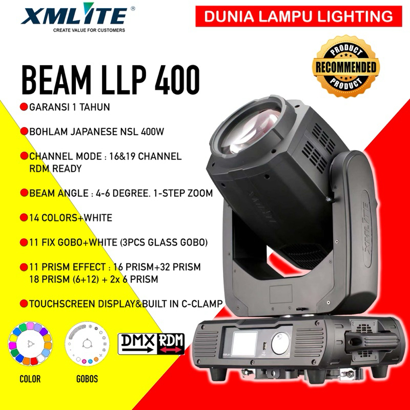 LAMPU SOROT PANGGUNG STUDIO LIGHTING MOVING HEAD BEAM LLP400 ORIGINAL XMLITE LLP 400