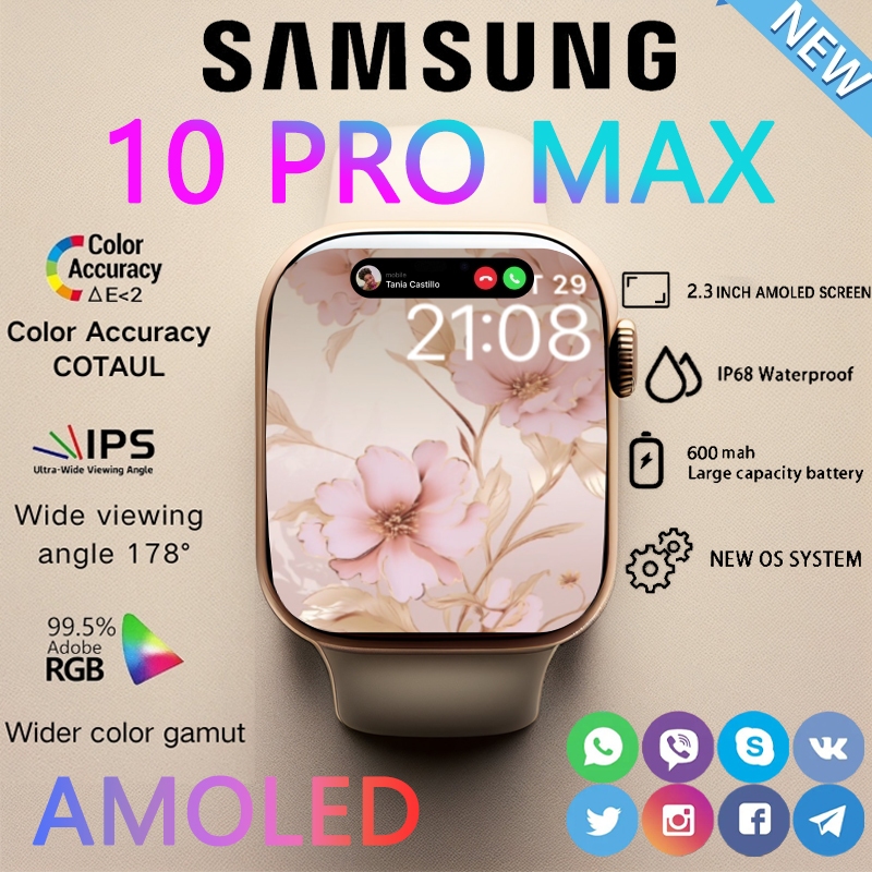 Samsung Watch 10 Pro Max Smart Watch 2.3 Inci Layar Sentuh Smartwatch IP68 Waterproof NFC Wireless Charge Wanita Dan P