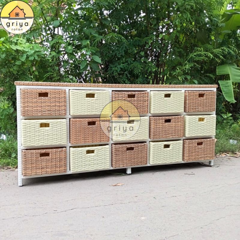 Meja Tv Rotan Jumbo Lemari 15 Laci Lemari Rotan Sintetis Laci 15 Rak Buku Serbaguna Lemari Pakaian Rotan Besar