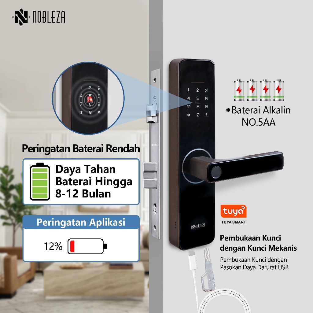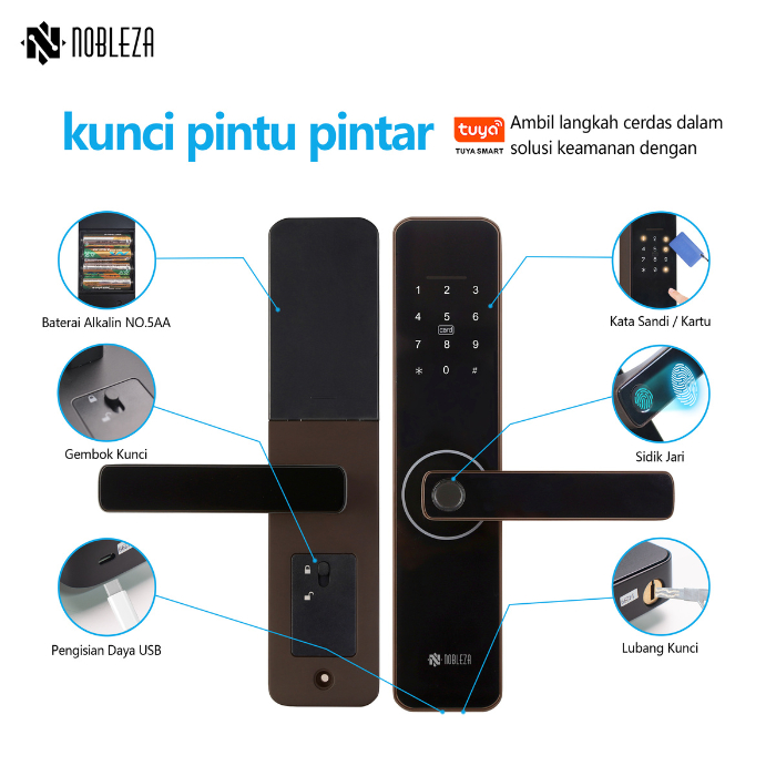 NOBLEZA Smart Door Lock Kunci Pintu Digital Handle Fingerprint RFID Smartlock App TUYA WIFI MEISSA